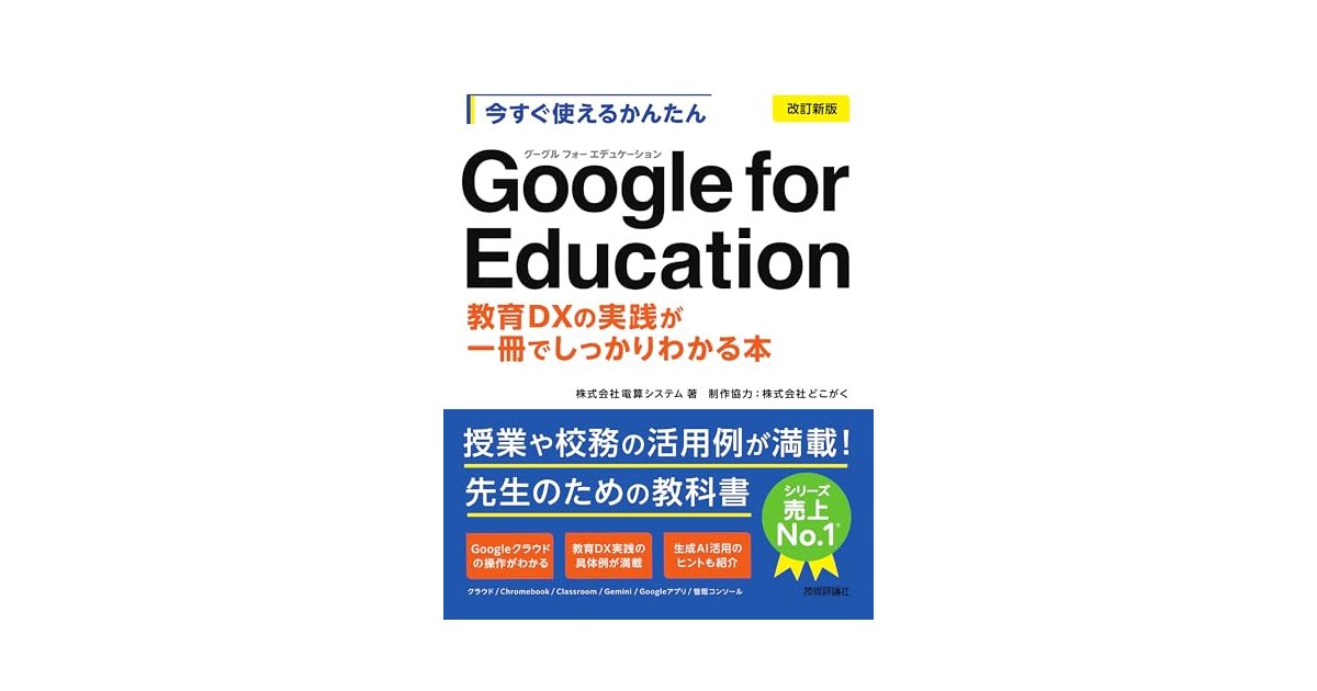 ![2025-10-06 今すぐ使えるかんたん Google for Education[改訂新版]](https://m.media-amazon.com/images/I/516o26Fvy-L._SL500_.jpg)