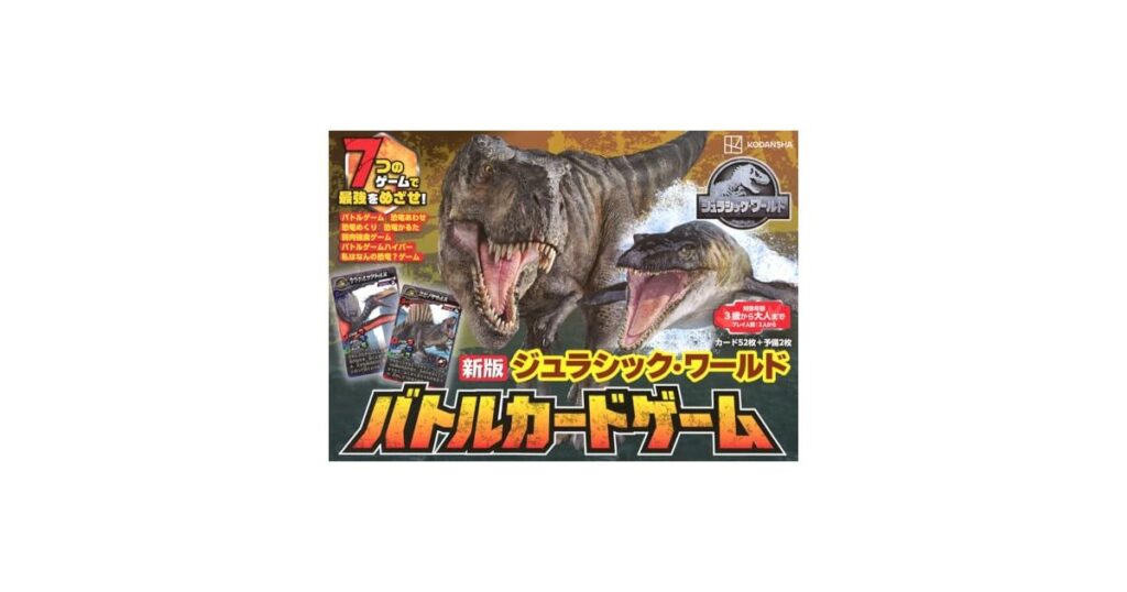 2025年10月29日講談社より発売の『ジュラシック・ワールド バトルカードゲーム』新版。映画の人気恐竜たちが登場する戦略性抜群のカードゲームで、恐竜ファン必見の一冊。 -