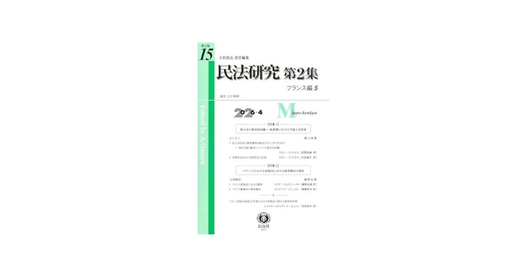 フランス民法の最新研究成果を収録した「民法研究 第15号 〔フランス編5〕」が2026年4月27日発売。専門家による深い法的考察と比較法研究で、民法学の新たな知見を提供。