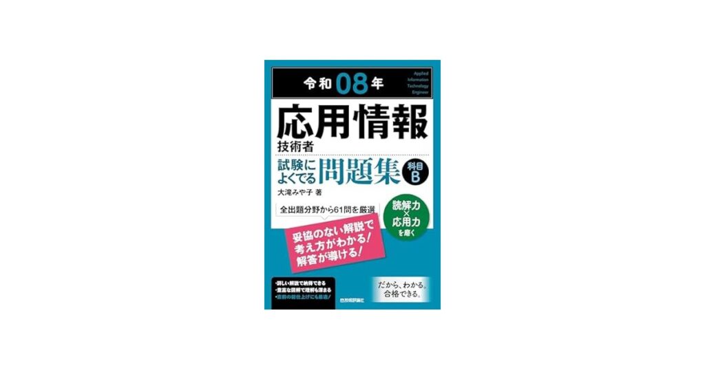 2026年3月24日発売『令和08年 応用情報技術者 試験によくでる問題集』のレビュー。大滝みや子先生著、IT業界を目指す受験生必携の試験対策本として話題沸騰中。 -